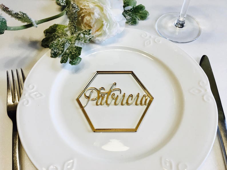 Gold Mirror Wedding Place Cards Personalized Geometric Wedding Etsy