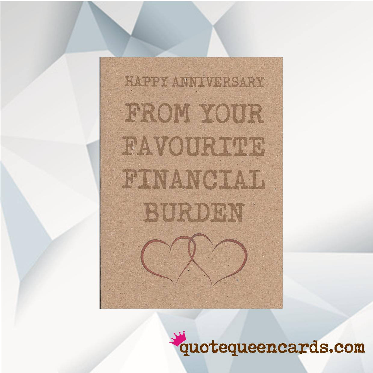 Happy Anniversary From Your Favourite Financial Burden Happy Anniversary Card Husband Wife Boyfriend Anniversary Card For Parents