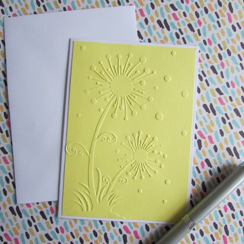 Dandelion Embossed Note Cards 6 Blank Card Sets Thank You Etsy